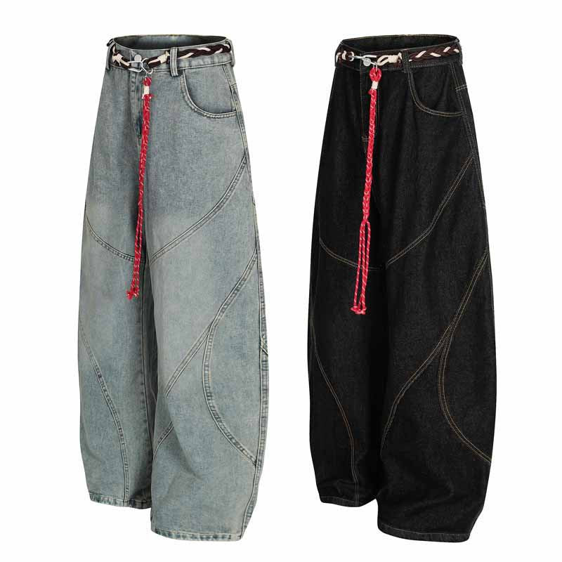Streetwear Hip-Hop Deconstructed Patchwork Knife-Edge Jeans Unisex Loose Distressed Washed Vintage Wide-Leg Pants